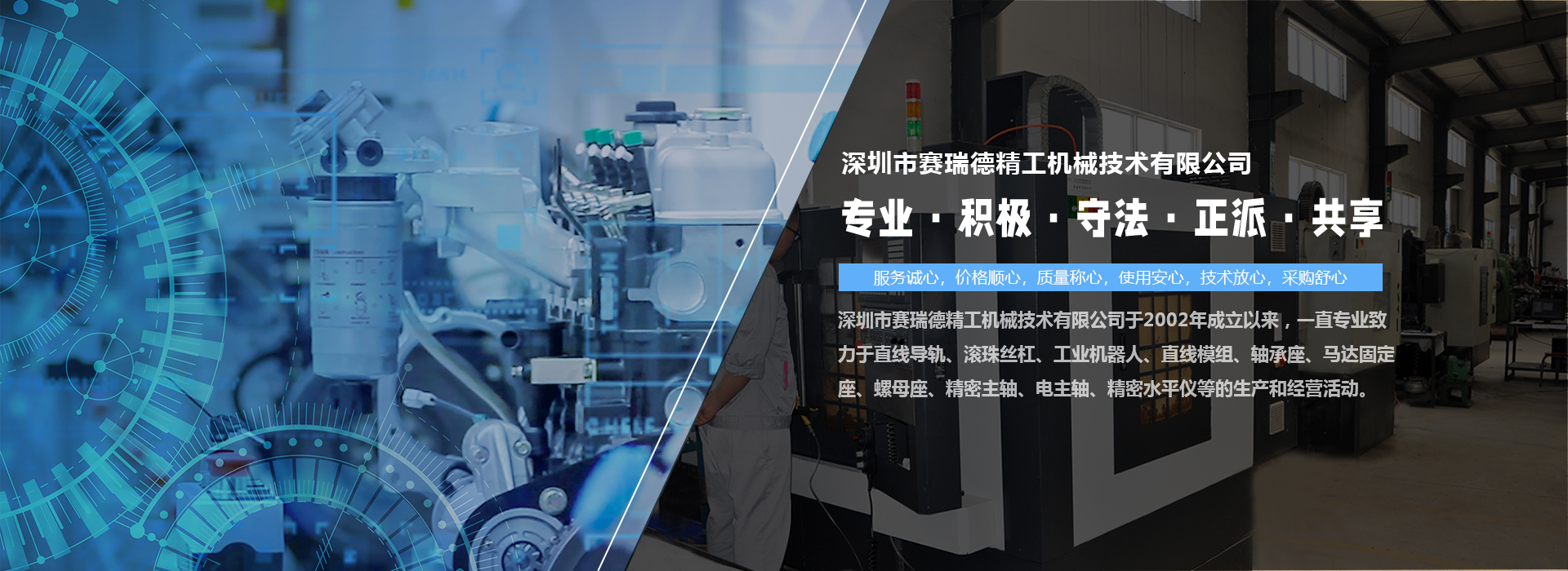深圳市賽瑞德精工機械技術有限公司于2002年成立以來,一直專業(yè)致力于直線導軌、滾珠絲杠、工業(yè)機器人、直線模組、軸承座、馬達固定座、螺母座、精密主軸、電主軸、精密水平儀等的生產(chǎn)和經(jīng)營活動。